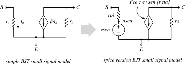 element line. NPN is the transistor type, and BF=90 sets the forward beta (gain) parameter for the BJT.