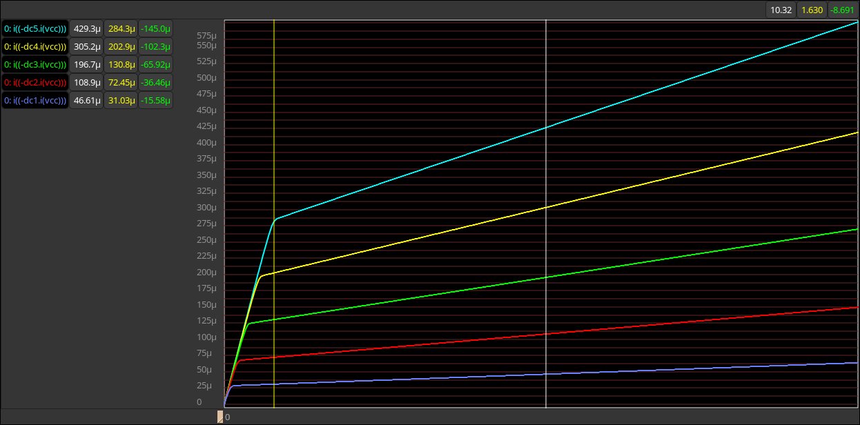 plot (-dc1.I(vcc)) (-dc2.I(vcc)) (-dc3.I(vcc)) (-dc4.I(vcc)) (-dc5.I(vcc))
